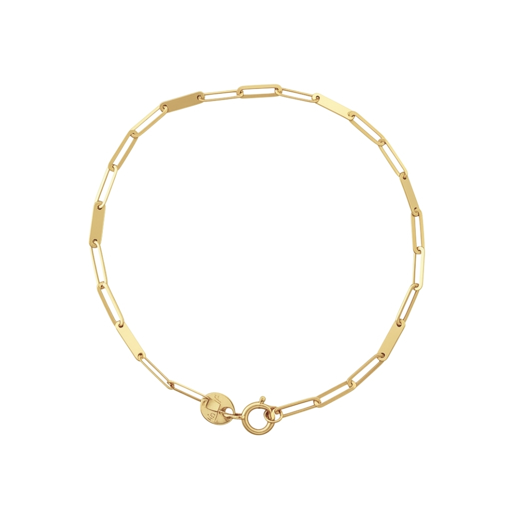 Połączenie delikatnego łańcuszka z geometrycznymi elementami tworzy lekką, a zarazem stylową kompozycję. Gładka, polerowana powierzchnia pięknie odbija światło, podkreślając szlachetność kruszcu. Produkt jest komfortowy w noszeniu i doskonale dopasowuje się do nadgarstka.