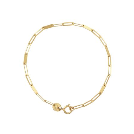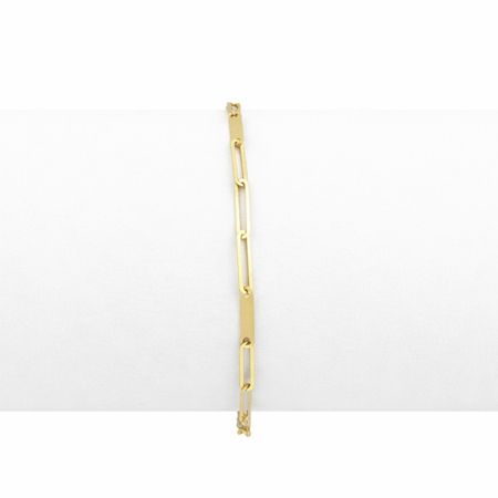 Bransoletka została wykonana z żółtego złota próby 585 (14K). Splot typu ankier, złożony z wydłużonych, regularnych ogniw, został wzbogacony o subtelne, gładkie blaszki, które nadają całości nowoczesnego i eleganckiego charakteru.