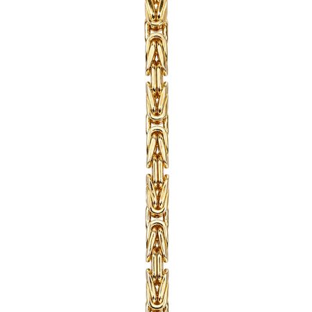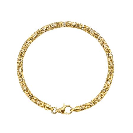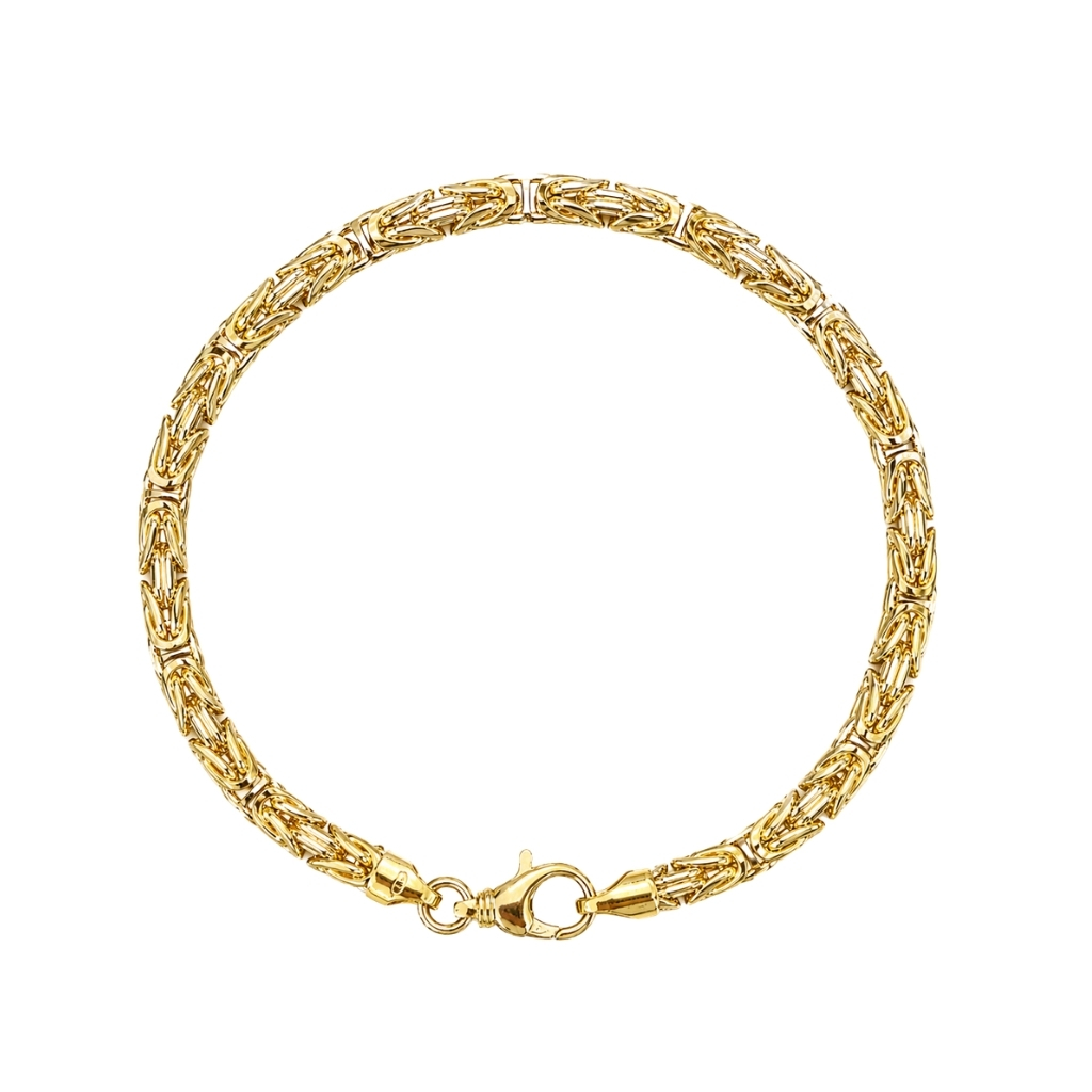 Bransoletka została wykonana z wysokiej jakości żółtego złota próby 585 (14K). Jej elegancka i solidna forma oparta na splocie królewskim nadaje biżuterii wyrazistego, luksusowego charakteru.