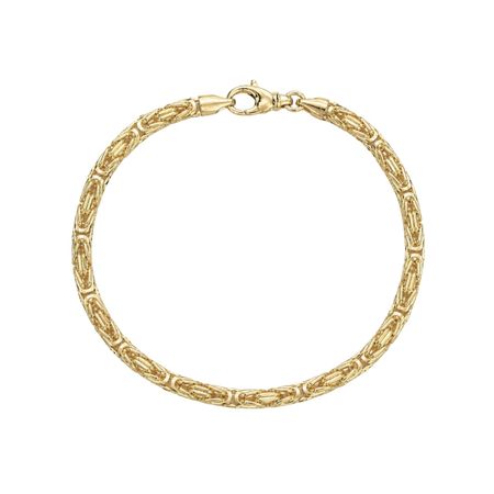 Bransoletka została wykonana z wysokiej jakości żółtego złota próby 585 (14K). Jej masywna i efektowna forma oparta na splocie królewskim nadaje biżuterii wyjątkowego, luksusowego charakteru.