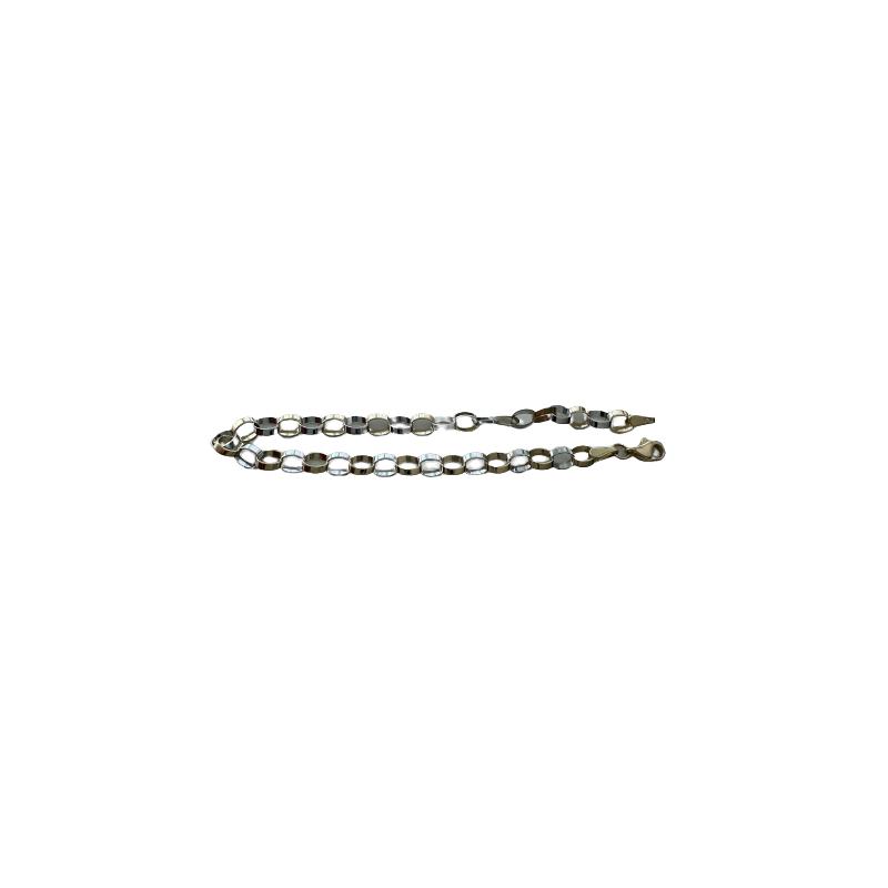 Bransoletka o splocie przypominającym ogniwa. Wykonana z białego i żółtego złota pr. 585.