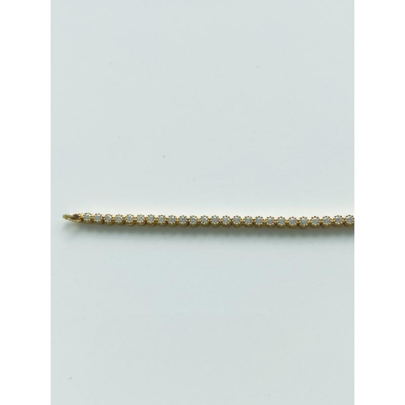 Bransoletka tenisowa to elegancka biżuteria, która składa się z łańcuszka z cyrkoniami. Bransoletka jest wykonana ze złota pr.585, a cyrkonie są umieszczone w regularnych odstępach na całym łańcuszku. Bransoletka tenisowa jest elegancka i subtelna, co sprawia, że jest idealna do noszenia na specjalne okazje, takie jak wesela, bankiety czy imprezy kulturalne. Jednakże, dzięki swojemu klasycznemu wyglądowi, bransoletka tenisowa może być również noszona na co dzień jako ozdoba na nadgarstku. Bransoletka jest popularna z powodu swojej eleganckiej i klasycznej formy, która przyciąga uwagę i nadaje stylowy wygląd.