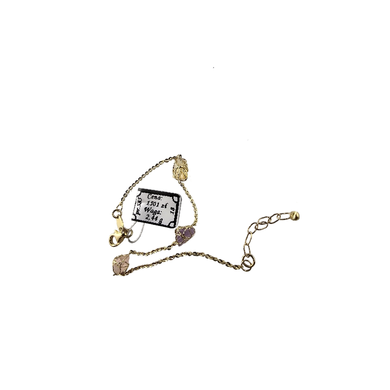 Złota bransoletka, której uroku dodają trzy kolorowe kamienie. Kompozycja ta emanuje energią i witalnością.