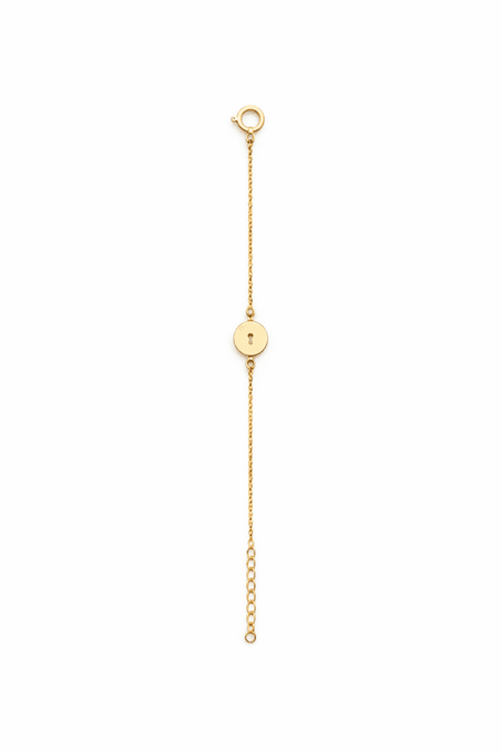 Delikatna bransoletka z okrągłą blaszką to subtelna i ponadczasowa propozycja dla miłośniczek minimalistycznej biżuterii. Cienki łańcuszek w połączeniu z gładkim elementem centralnym tworzy harmonijną, lekką kompozycję, która pięknie układa się na nadgarstku.
