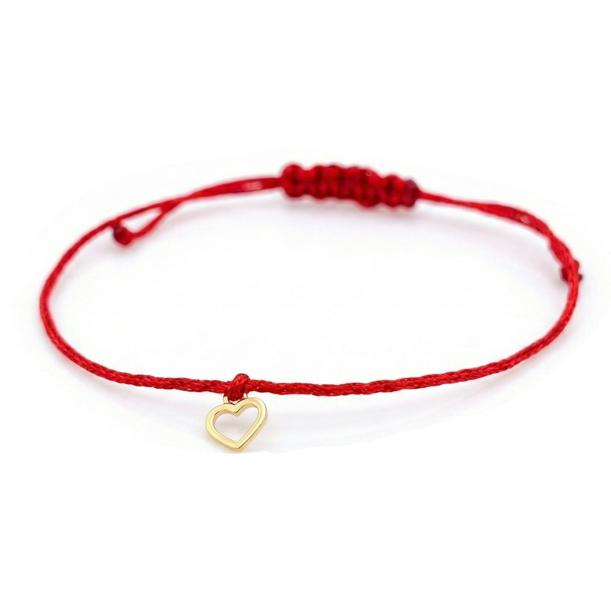 Bransoletka została wykonana z czerwonego sznurka i ozdobiona delikatnym elementem w kształcie serca ze złota próby 585 (14K). Minimalistyczna forma oraz kontrast pomiędzy intensywną czerwienią a subtelnym blaskiem złota nadają biżuterii wyjątkowego, symbolicznego charakteru. Motyw serca podkreśla jej emocjonalne znaczenie i ponadczasową elegancję.