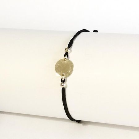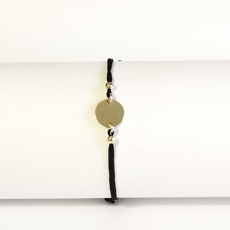 CZARNA BRANSOLETKA SZCZĘŚCIA, ZŁOTE KOŁO 1,03g 14K
