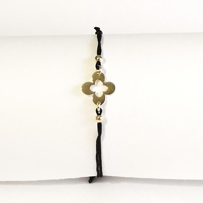 CZARNA BRANSOLETKA SZCZĘŚCIA, ZŁOTY KWIATEK 0,90g 14K