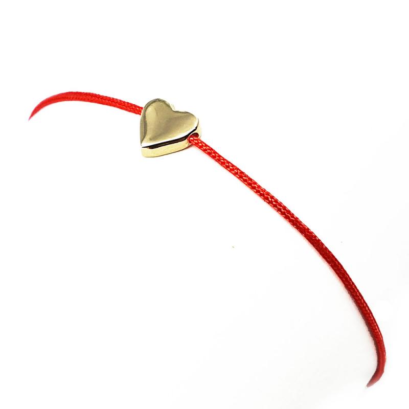 CZERWONA BRANSOLETKA SZCZĘŚCIA, SERDUSZKO WYKONANE ZE ZŁOTA 14K.
