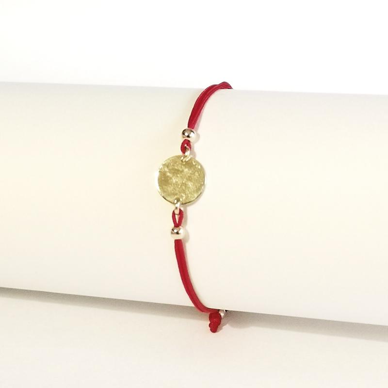 CZERWONA BRANSOLETKA SZCZĘŚCIA, ZŁOTE KOŁO 1,05g 14K