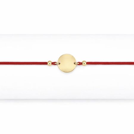 Regulowana bransoletka szczęścia została ozdobiona elementami wykonanymi w całości ze złota próby 585 (14K). Jej centralnym punktem jest gładka, polerowana blaszka w kształcie koła: minimalistyczna, elegancka i ponadczasowa. Prosta forma nadaje biżuterii nowoczesnego charakteru, a jednocześnie sprawia, że jest uniwersalna i łatwa do łączenia z innymi dodatkami.