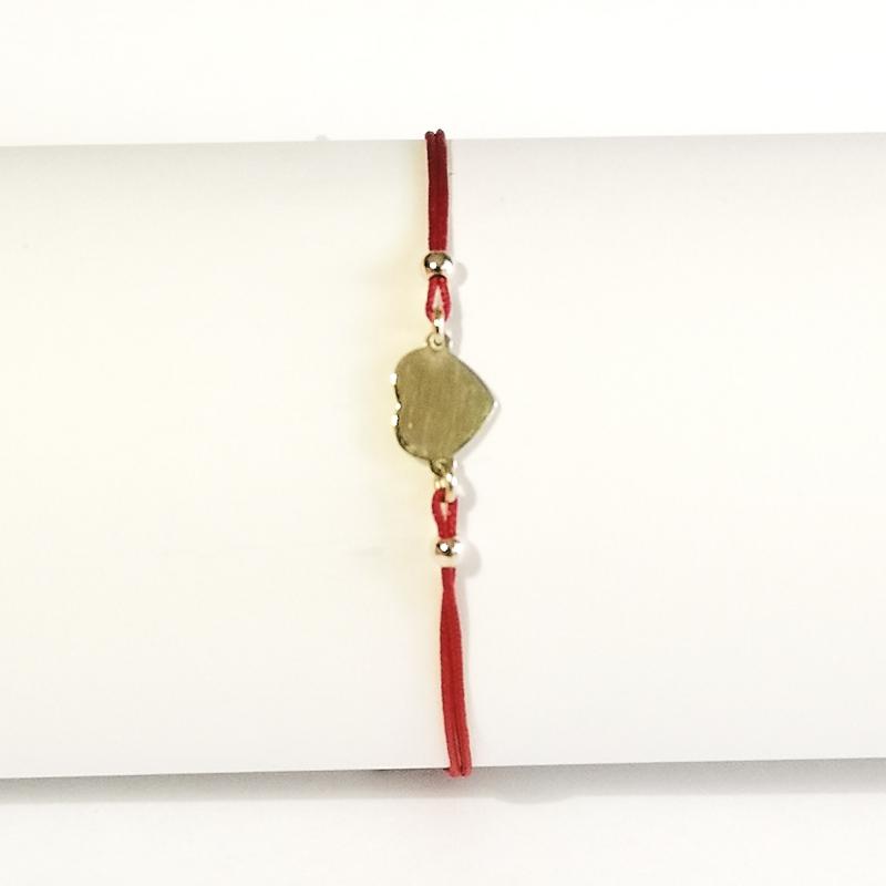 CZERWONA BRANSOLETKA SZCZĘŚCIA, ZŁOTE SERCE 0.94g 14K