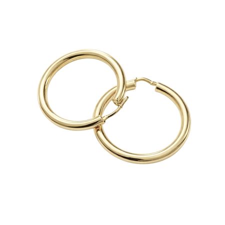Efektowne kolczyki koła wykonane z żółtego złota próby 585 zachwycają prostą, dopracowaną formą oraz starannie wypolerowaną powierzchnią. Gładki profil i precyzyjne wykończenie podkreślają wysoką jakość kruszcu oraz dbałość o każdy detal.
