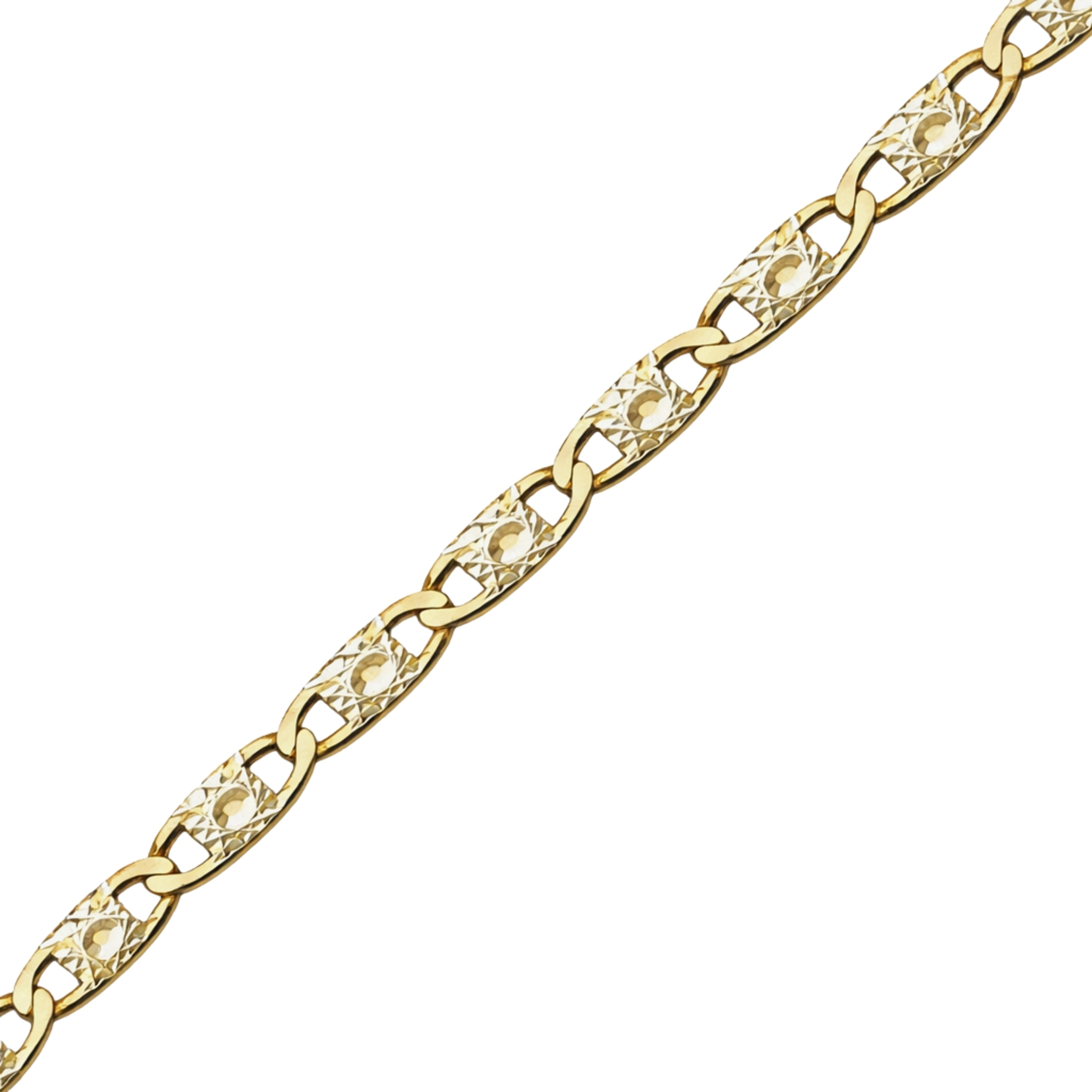 Złoty łańcuszek splot Gucci, zdobiony.Waga 3,94gDługość 45cm. Piękny łańcuszek splot "gucci" z żółtego złota, dodatkowo zdobiony efektownym frezowaniem. Elegancki i wyjątkowy dodatek.Zwracamy dużą uwagę na każdy szczegół w naszych wyrobach, dodatkowo priorytetem jest trwałość biżuterii w związku z tym nasze produkty wykonywane są ze złota próby 585, 14 karat. Wyższa próba złota jaką oferujemy zapewnia o większej wytrzymałości biżuterii, dzięki czemu będziemy mogli cieszyć się udanymi zakupami przez wiele lat!Bardzo ważnym czynnikiem przy wyborze biżuterii jest długość i waga łańcuszka, te parametry pozwolą nam określić jak masywny i trwały będzie wybrany produkt.