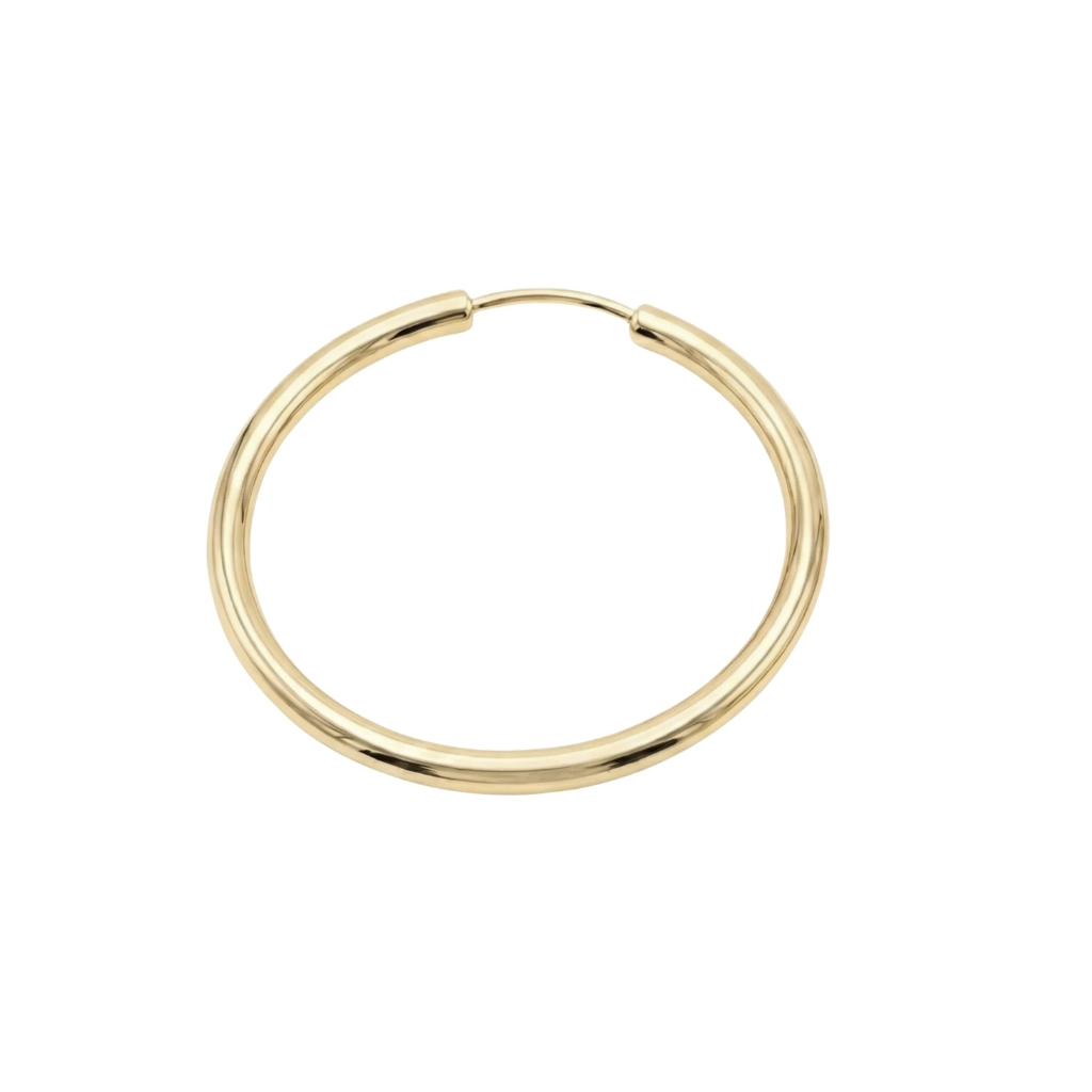 Kolczyk wykonany ze złota próby 585 (14K) w formie klasycznego, gładkiego koła. Minimalistyczny i ponadczasowy wzór sprawia, że jest to model niezwykle uniwersalny – idealny zarówno do codziennych stylizacji, jak i eleganckich zestawień.