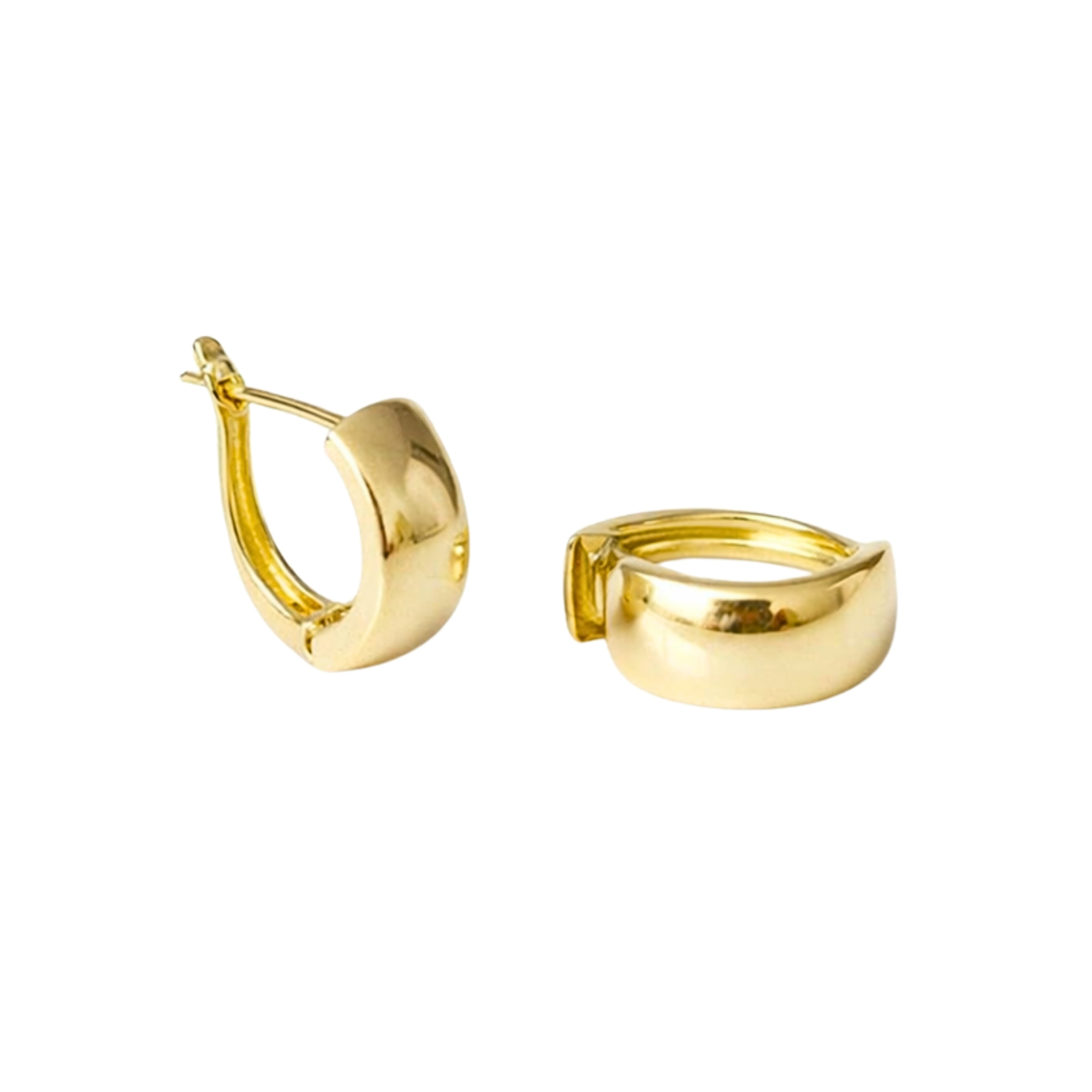 Klasyczne kolczyki typu blaszki wykonane z żółtego złota próby 585. Gładka, lekko zaokrąglona forma nadaje im elegancji i sprawia, że pięknie odbijają światło, podkreślając szlachetny charakter.