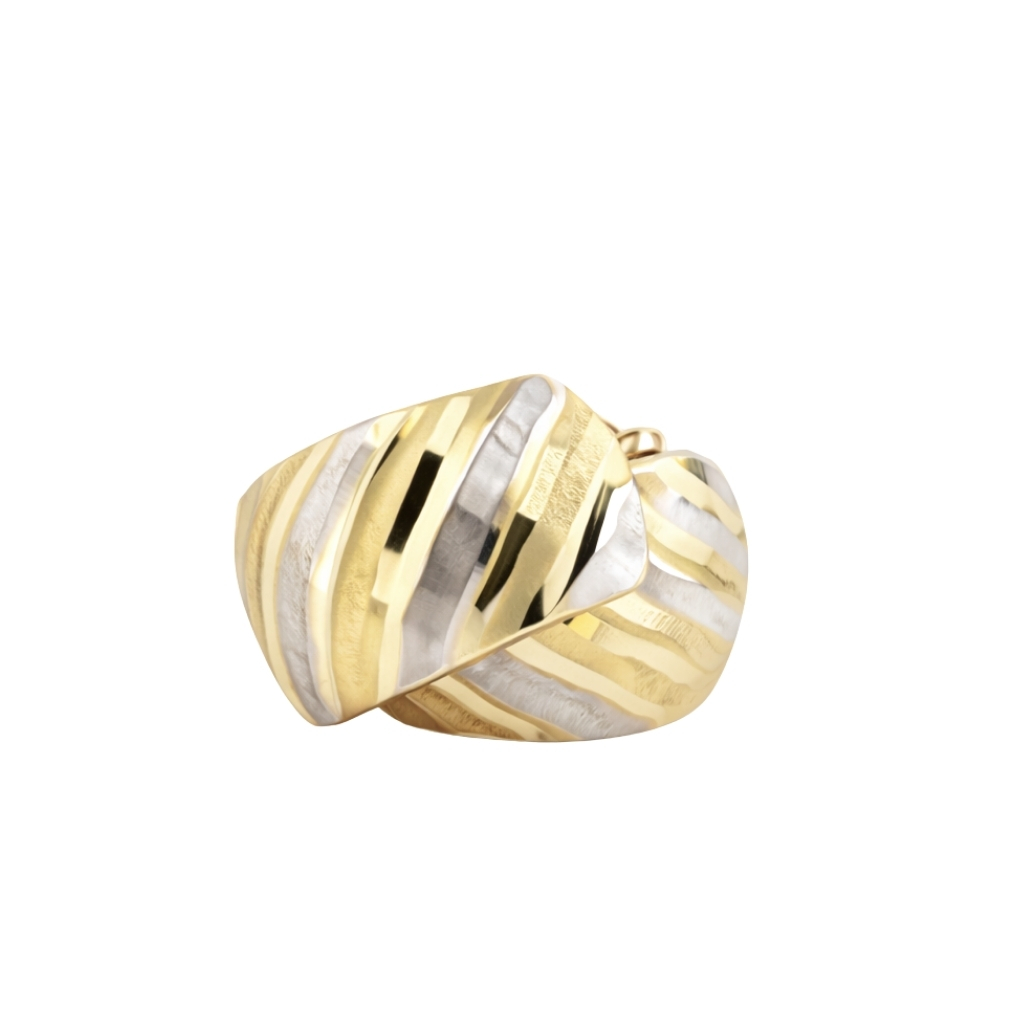Kolczyki zostały wykonane z wysokiej jakości żółtego i białego złota próby 585 (14K). Dwukolorowe połączenie kruszcu nadaje im elegancki i nowoczesny charakter, podkreślając oryginalny design biżuterii.