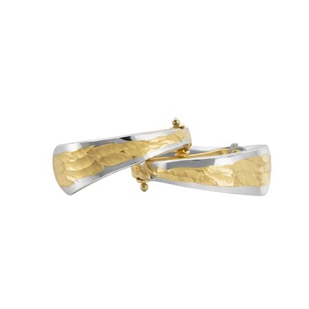 Kolczyki zostały wykonane z wysokiej jakości żółtego i białego złota próby 585 (14K). Harmonijne połączenie dwóch kolorów kruszcu nadaje biżuterii elegancki i nowoczesny charakter, podkreślając jej unikalny design.