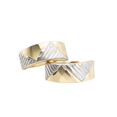 Kolczyki zostały wykonane z wysokiej jakości żółtego i białego złota próby 585 (14K). Ich nowoczesna forma została ozdobiona geometrycznym wzorem, w którym kontrastujące powierzchnie tworzą efektowną i dynamiczną kompozycję.