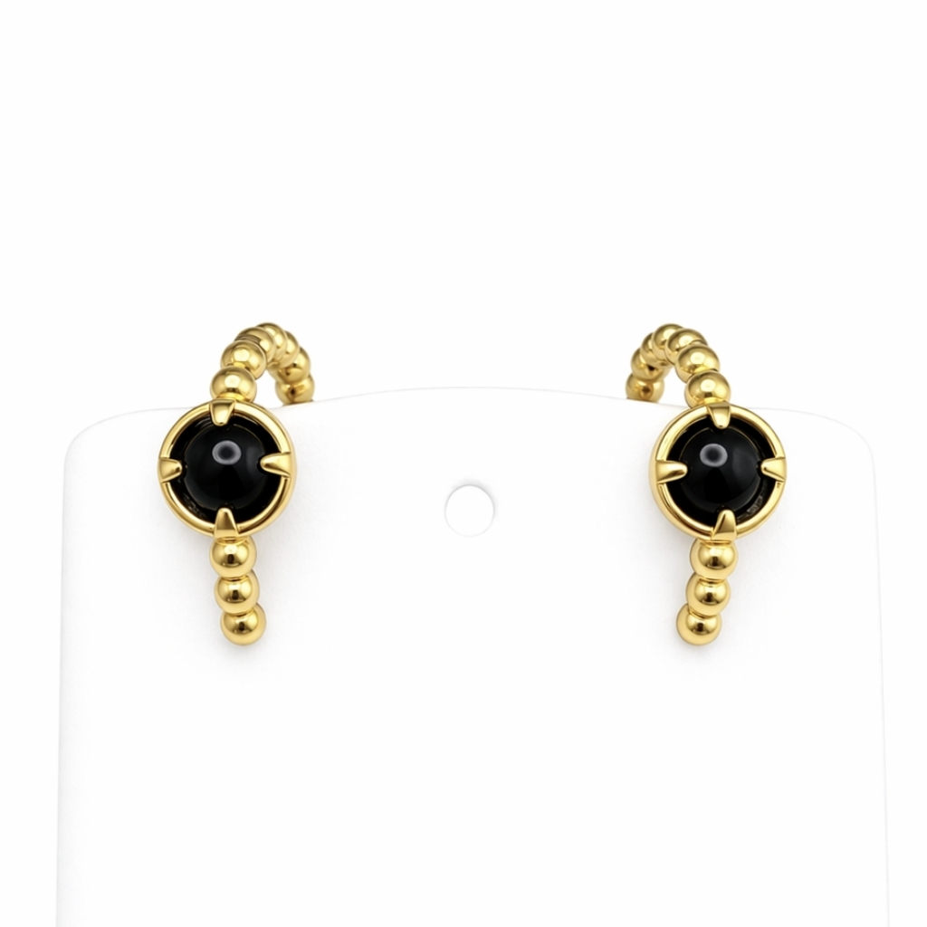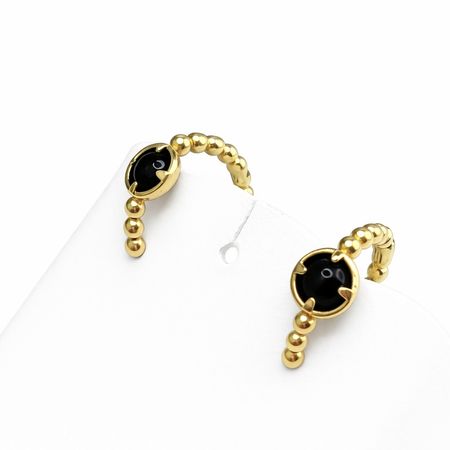 Kolczyki dziecięce zostały wykonane z wysokiej jakości żółtego złota próby 585 (14K). Urocza forma została ozdobiona czarną cyrkonią, która stanowi wyrazisty akcent i nadaje biżuterii eleganckiego charakteru.