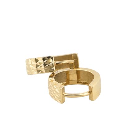 Kolczyki zostały wykonane z wysokiej jakości żółtego złota próby 585 (14K). Ich powierzchnia została ozdobiona efektownym, diamentowanym szlifem, który nadaje biżuterii wyjątkowego blasku i podkreśla jej elegancki charakter.