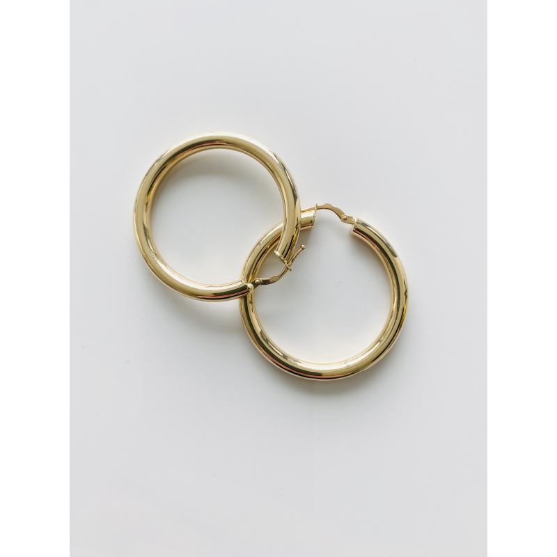 Kolczyki wykonane ze złota próby 585 w kształcie gładkiego koła. Jest to klasyczny, ponadczasowy model biżuterii, który piękne dopełni każdą styliazcję. Bardzo łatwo się odpinają oraz zapinają. Kolczyki w kształcie koła z zapięciem angielskim w krajach anglojęzycznych nazywają się "Hoop earings with english clasp" i są uwielbiane przez stylistów w Wielkiej Brytanii oraz Stanach Zjednoczonych.