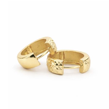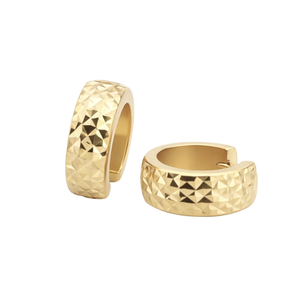 Kolczyki zostały wykonane z wysokiej jakości żółtego złota próby 585 (14K). Ich klasyczna forma została wzbogacona efektownym, diamentowanym wykończeniem, które pięknie odbija światło i nadaje biżuterii wyrazistego, eleganckiego blasku.