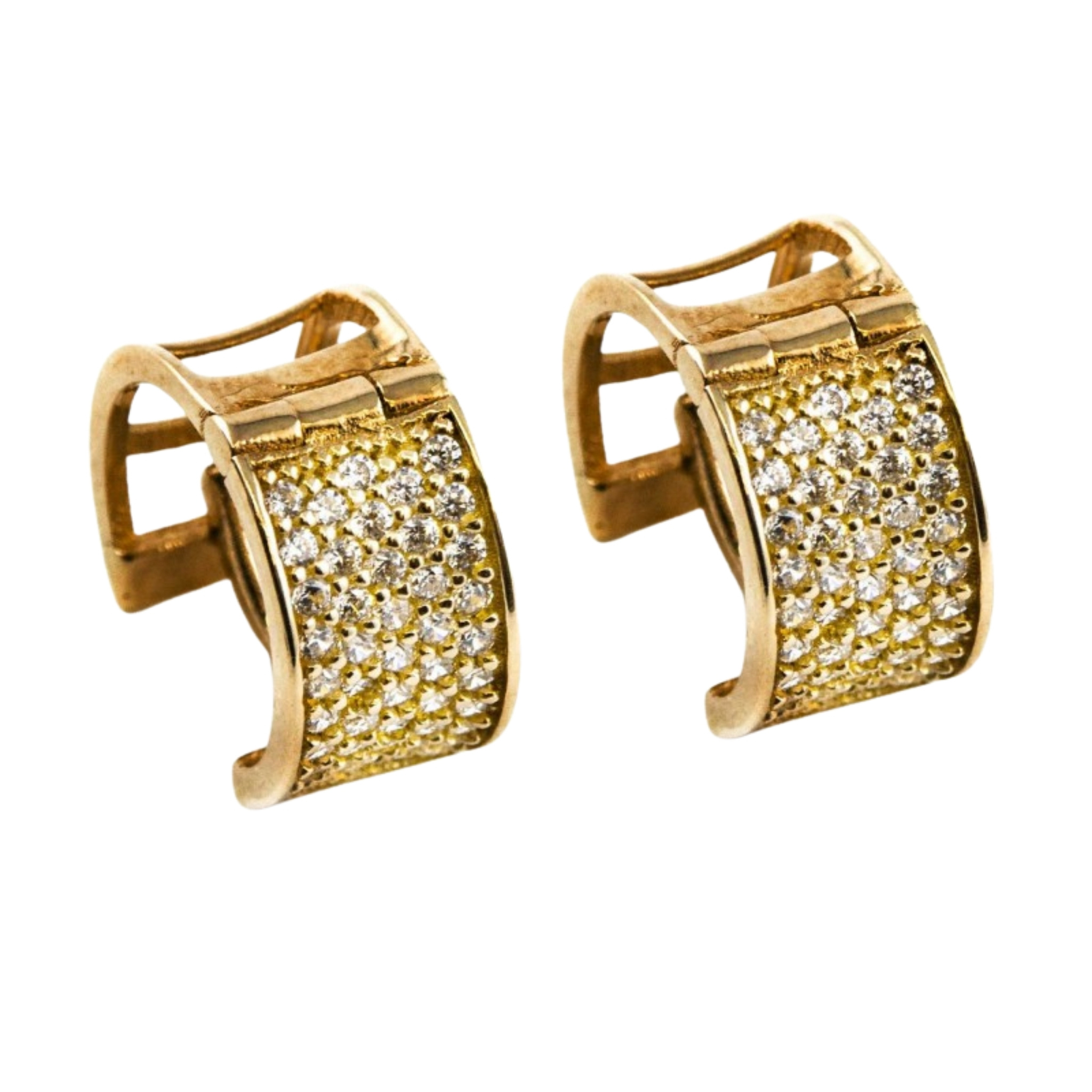 Kolczyki koła, zapinane szerokie z cyrkoniam ze złota pr. 585, 14k.