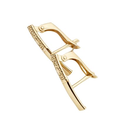 Kolczyki zostały wykonane z wysokiej jakości żółtego złota próby 585 (14K). Ich powierzchnia została ozdobiona dekoracyjnym, ażurowym wzorem, który nadaje biżuterii wyjątkowej lekkości i elegancji.