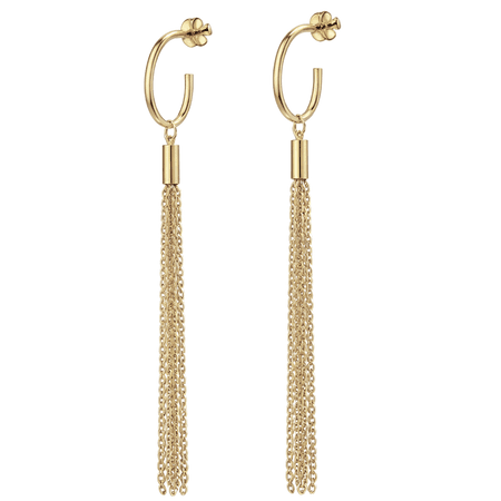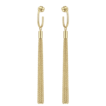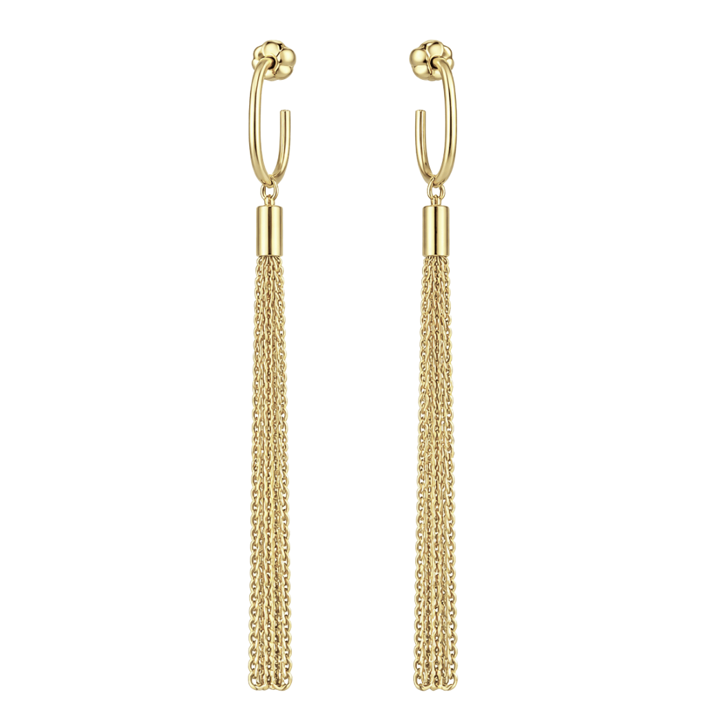Kolczyki wykonane z wysokiej jakości złota próby 585 (14K) zachwycają delikatną, a zarazem efektowną formą. Ich subtelne koła zostały ozdobione długimi, swobodnie opadającymi łańcuszkami, które pięknie poruszają się przy każdym ruchu, dodając biżuterii lekkości i elegancji.