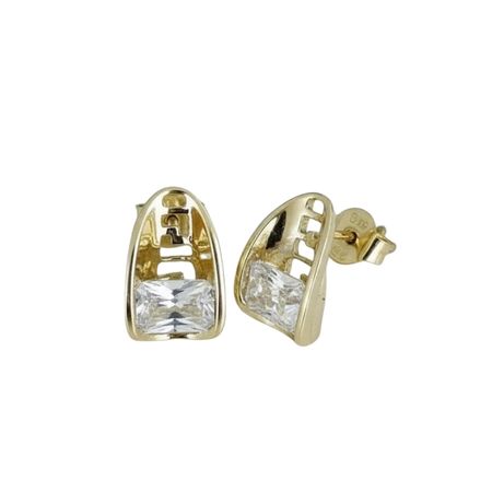 Subtelne kolczyki wykonane z żółtego złota próby 585, ozdobione cyrkonią o eleganckim szlifie szmaragdowym. Prostokątna forma kamienia nadaje biżuterii nowoczesnego charakteru, a jego precyzyjne fasetowanie pięknie odbija światło, podkreślając klarowność i blask.