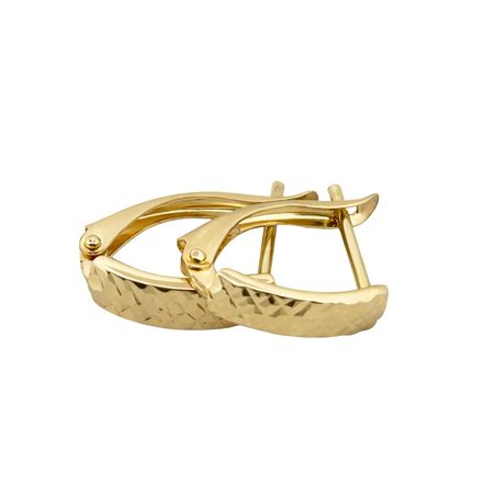 Kolczyki zostały wykonane z wysokiej jakości żółtego złota próby 585 (14K). Ich elegancka, klasyczna forma została wzbogacona o efektowną, diamentowaną powierzchnię, która pięknie odbija światło i nadaje biżuterii wyjątkowego blasku.