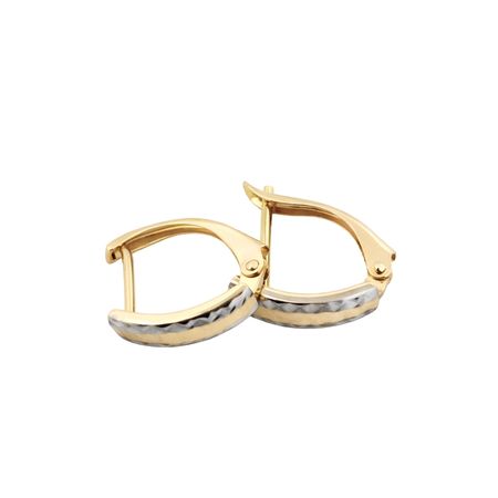 Kolczyki zostały wykonane z wysokiej jakości żółtego i białego złota próby 585 (14K). Połączenie dwóch kolorów kruszcu nadaje biżuterii elegancki i nowoczesny charakter, podkreślając jej wyjątkowy design.