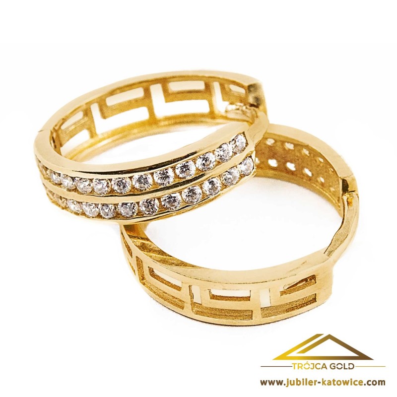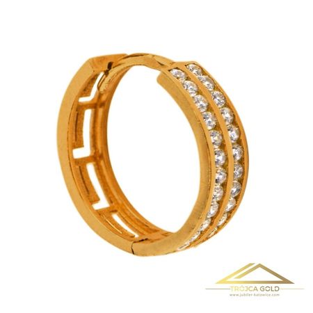 Piękne Złote Kolczyki w kształcie koła z kamieniami jubilerskimi oraz z motywem drogi greckiej to niezwykła biżuteria. Koła to ponadczasowy wzór, który świetnie sprawdza się w różnego rodzaju stylizacjach. Jest to perfekcyjny wybór dla wszystkich- must have w twojej szkatułce.