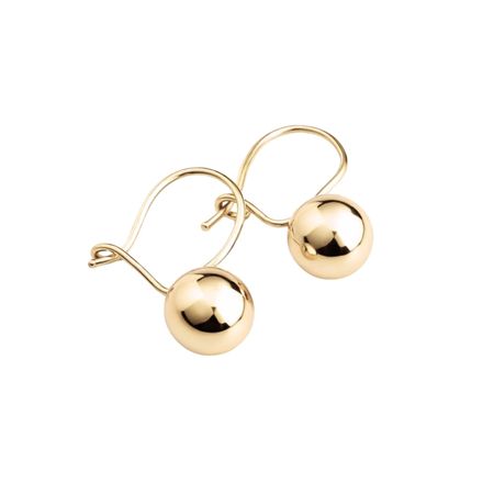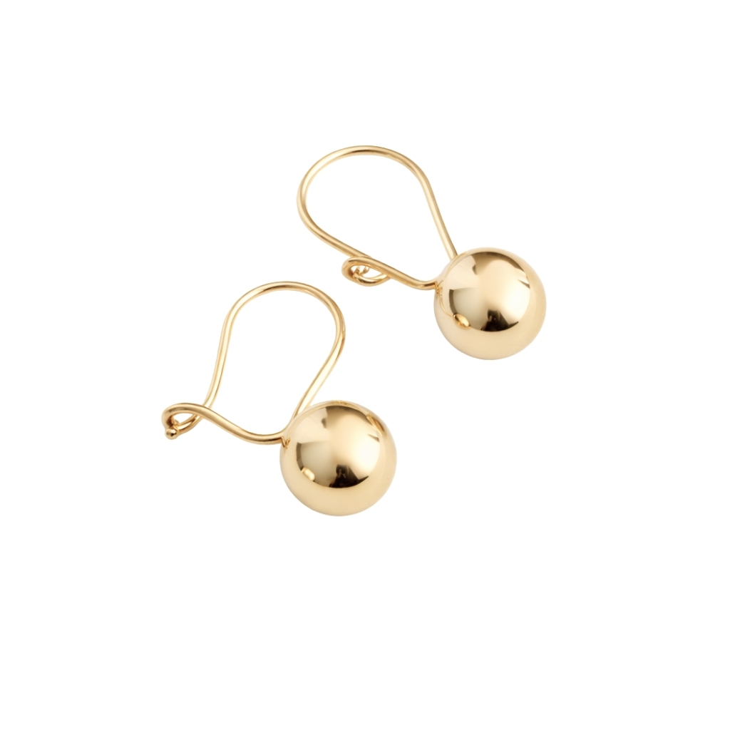 Kolczyki wykonane z żółtego złota próby 585 mają formę klasycznych, gładkich kulek zawieszonych na wygodnym zapięciu typu bigiel. To ponadczasowy model, który łączy prostotę z elegancją.