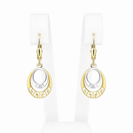 Kolczyki złote wiszące o owalnym kształcie, wykonane ze złota próby 585 (14K). Model łączy w sobie dwa odcienie złota – klasyczne żółte oraz kontrastujące białe – tworząc elegancką i wyrazistą kompozycję.