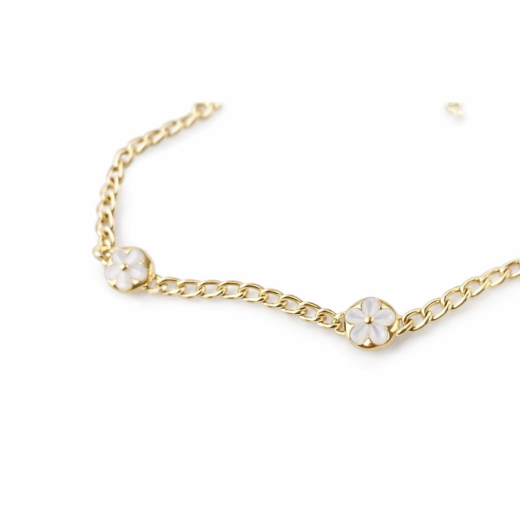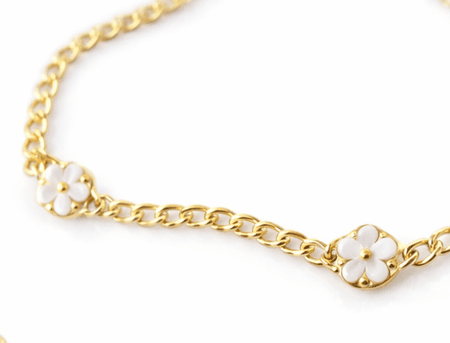 Motyw kwiatu stanowi centralny punkt kompozycji, wprowadzając lekkość oraz delikatność do całej formy. Symbolika kwiatów – kojarzona z pięknem, harmonią i odrodzeniem – sprawia, że łańcuszek nabiera wyjątkowego, osobistego znaczenia. Emaliowane elementy pięknie kontrastują ze złotą oprawą, tworząc efekt subtelnego, eleganckiego blasku.