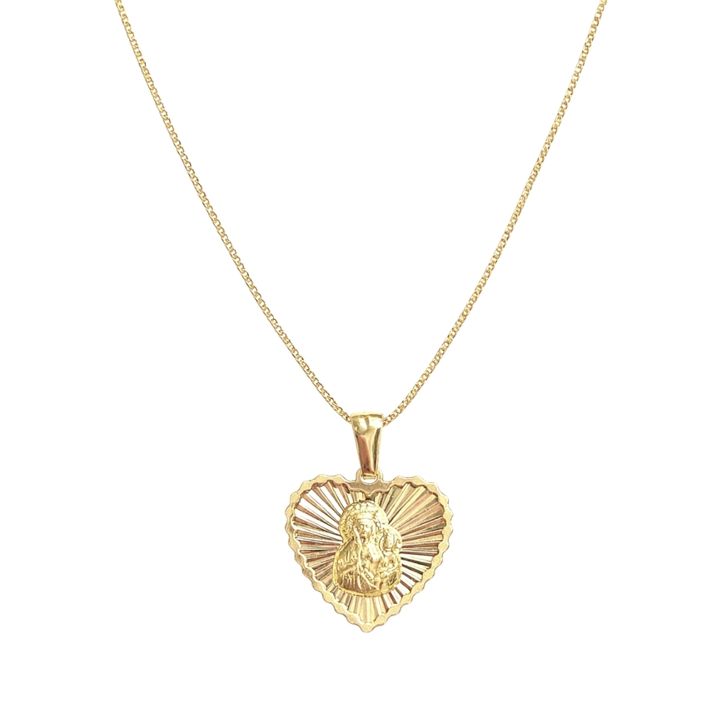 W skład zestawu wchodzi piękny medalik przedstawiający Matkę Bożą Częstochowską – symbol wiary, opieki i duchowej siły. Całość dopełnia delikatny łańcuszek o splocie kostka, który efektownie odbija światło i doskonale komponuje się z zawieszką.