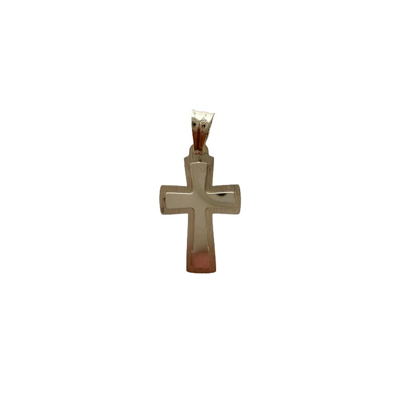 Elegancka zawieszka w kształcie krzyżykaw całości wykonana ze złota pr 585. Produkt posiada błyszczące, idealnie wypolerowane wnętrze, krawędzie  natomiast o matowym, szczotkowanym wykończeniu. Biżuteria wykonana z niezwykłą starannością o detale z najwyższej jakości materiałów, będzie służyć na długie lata.