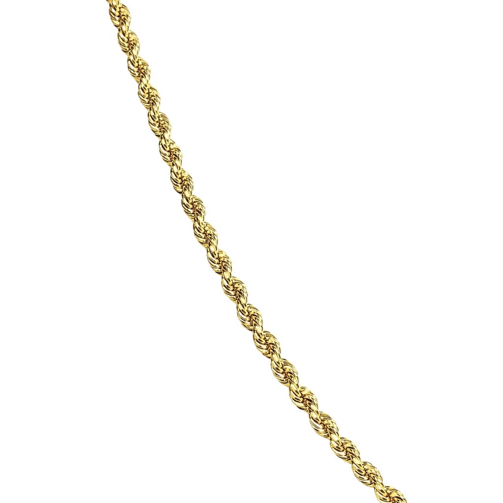 Łańcuszek został wykonany z żółtego złota próby 585 (14K). Splot typu kordel wyróżnia się efektownym, skręconym układem ogniw, który tworzy elegancką strukturę przypominającą pleciony sznur.
