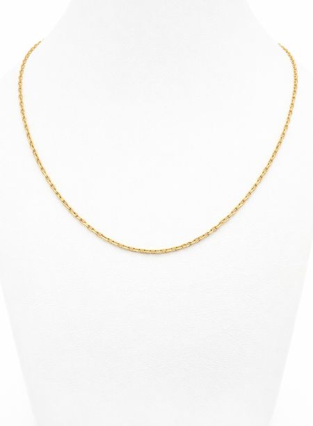 Łańcuszek został wykonany ze złota próby 585 (14K). Klasyczny splot ankier wyróżnia się regularnie połączonymi, owalnymi ogniwami, które tworzą elegancką i ponadczasową formę biżuterii. Starannie wypolerowana powierzchnia podkreśla naturalny blask złota, dzięki czemu prezentuje się niezwykle estetycznie i subtelnie odbija światło.