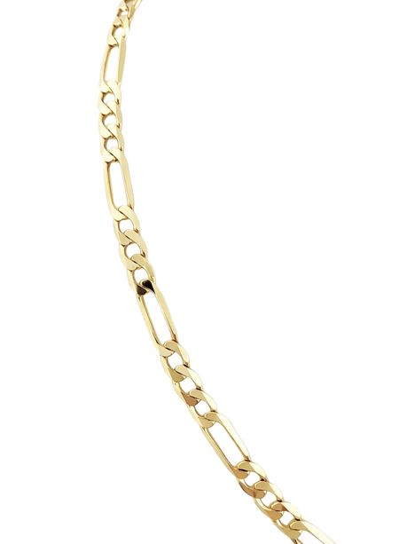 Łańcuszek o splocie figaro został wykonany ze złota próby 585. Charakterystyczne naprzemienne zestawienie podłużnych i krótszych ogniw nadaje biżuterii wyrazisty oraz elegancki charakter. Gładka, polerowana powierzchnia podkreśla szlachetny blask złota i precyzję wykonania.