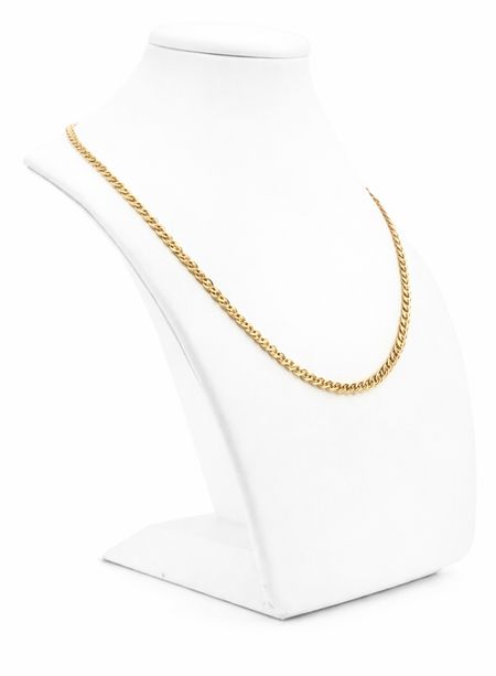 Gładko wypolerowana powierzchnia pięknie odbija światło, podkreślając naturalny blask złota i nadając biżuterii elegancki charakter. Dzięki swojej zwartej konstrukcji łańcuszek prezentuje się bardzo efektownie i komfortowo układa się na szyi. To propozycja, która pasuje do wielu stylizacji i okazji.