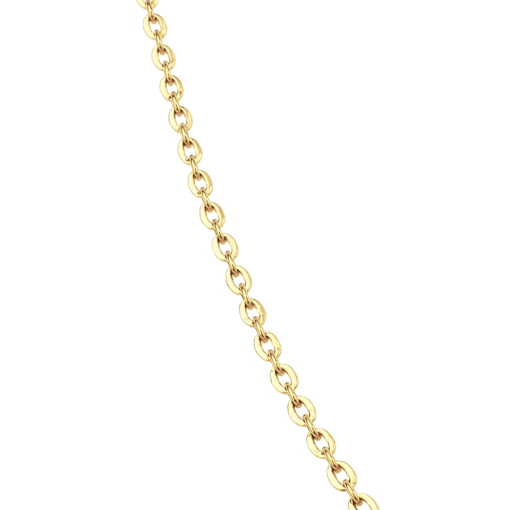 Łańcuszek został wykonany z żółtego złota próby 585 (14K). Posiada splot typu rolo, składający się z regularnych, okrągłych ogniw.