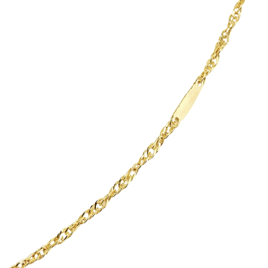 Łańcuszek wykonany z żółtego złota próby 585 (14K) to elegancka propozycja o delikatnym, a zarazem efektownym charakterze. Splot typu singapur wyróżnia się skręconą formą, która pięknie odbija światło, nadając biżuterii subtelnego blasku.