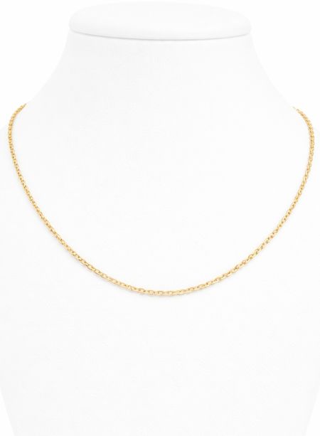 Łańcuszek został wykonany ze złota próby 585 (14K). Klasyczny splot ankier charakteryzuje się regularnie ułożonymi, owalnymi ogniwami, które tworzą elegancką i ponadczasową formę biżuterii. Starannie wypolerowana powierzchnia podkreśla naturalny blask złota, dzięki czemu produkt prezentuje się niezwykle estetycznie i stylowo.