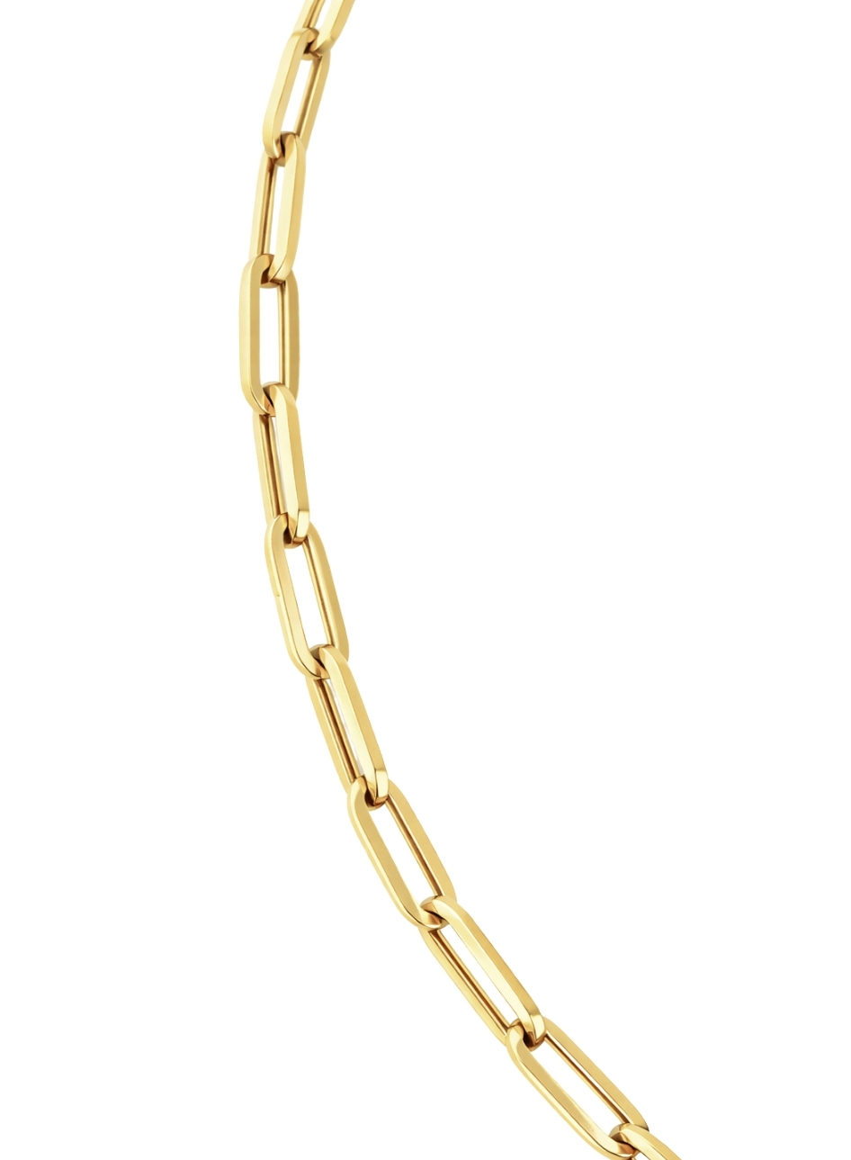 Łańcuszek o splocie ankier został wykonany ze złota próby 585. Charakterystyczne, podłużne ogniwa tworzą nowoczesną, a zarazem ponadczasową kompozycję. Gładka, polerowana powierzchnia podkreśla szlachetny blask złota i nadaje całości elegancki charakter.