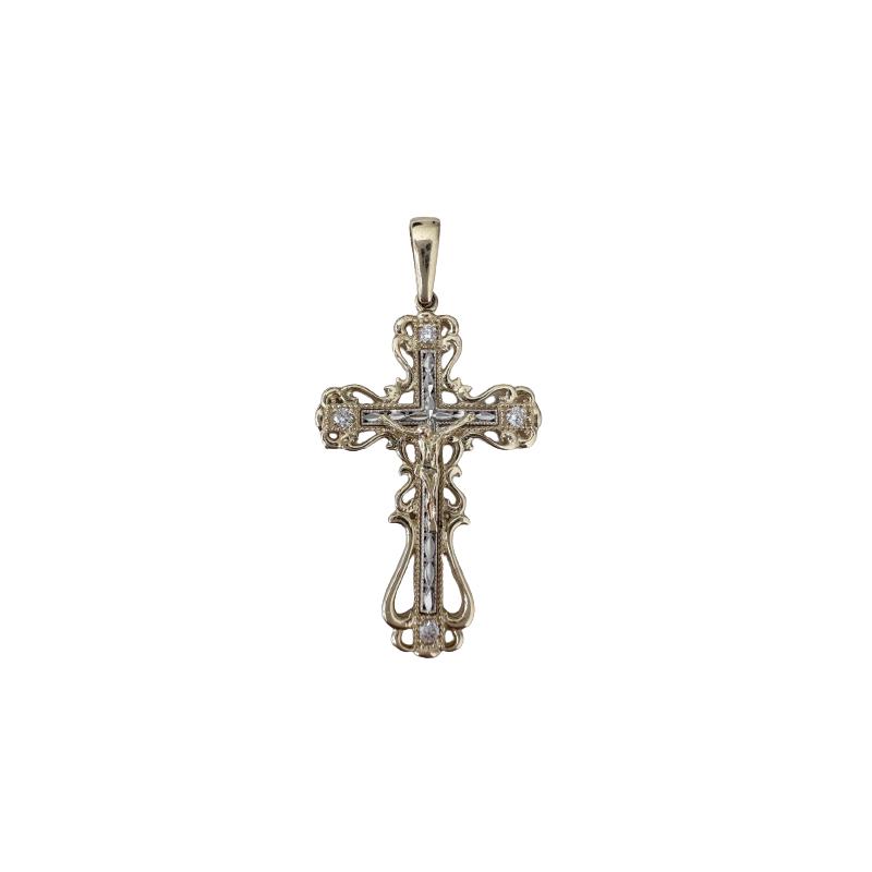 Piękny krzyżyk z wizerunkiem Jezusa Chrystusa. Krzyżyk został wykonany z białego i żółtego złota. Zdobią go cztery cyrkonie.