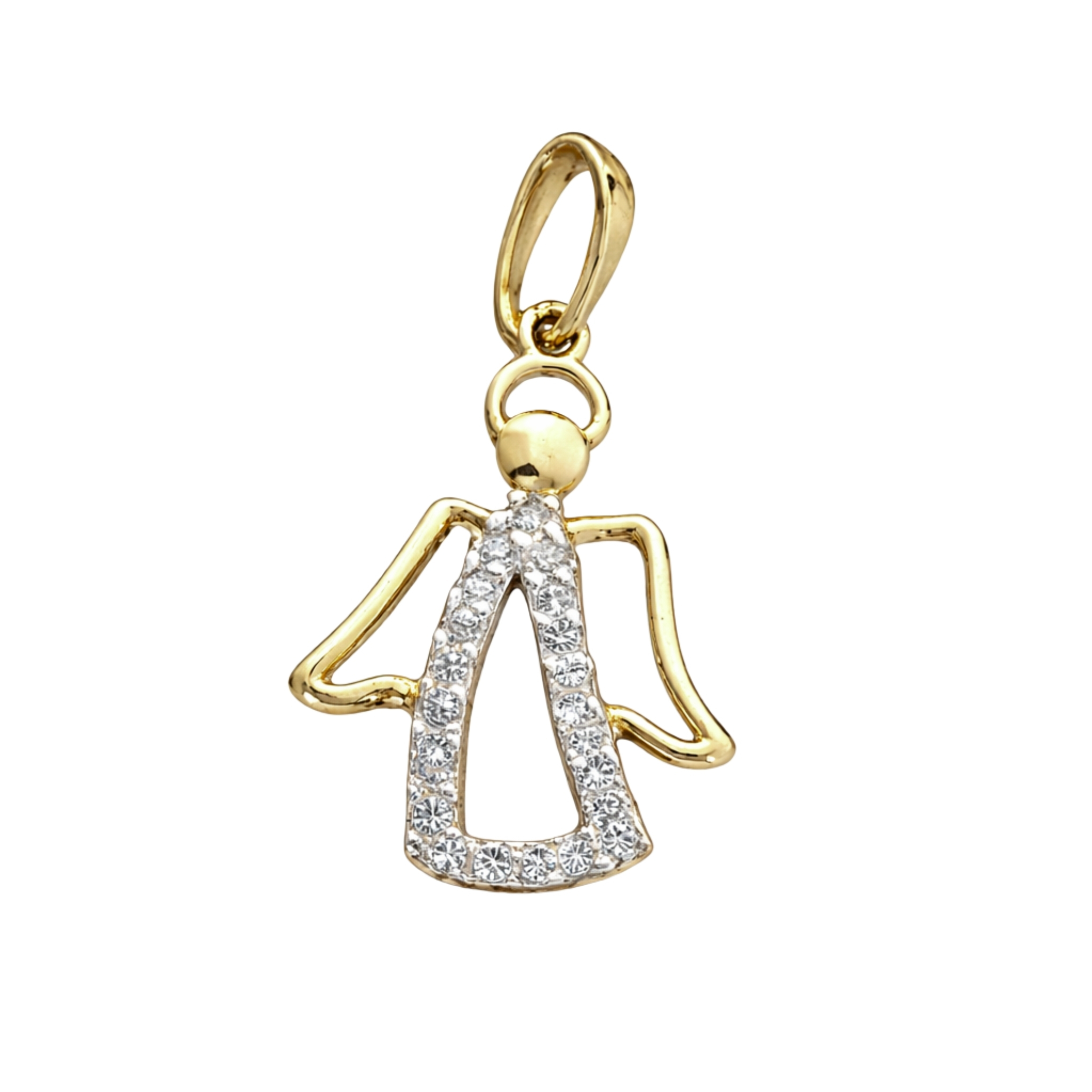 Medalik Aniołek wykonany ze złota próby 585 (14K), ozdobiony subtelnymi cyrkoniami, to wyjątkowa propozycja o głębokim, symbolicznym znaczeniu. Starannie dopracowany detal oraz delikatny blask kamieni nadają biżuterii elegancji i ponadczasowego charakteru.