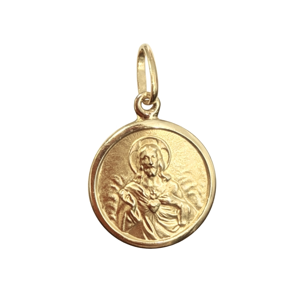 Dwustronny medalik został wykonany z wysokiej jakości żółtego złota próby 585 (14K). Klasyczna, okrągła forma skrywa głęboką symbolikę religijną – na jednej stronie znajduje się wizerunek Matki Bożej z Dzieciątkiem, natomiast na drugiej Jezusa Chrystusa.