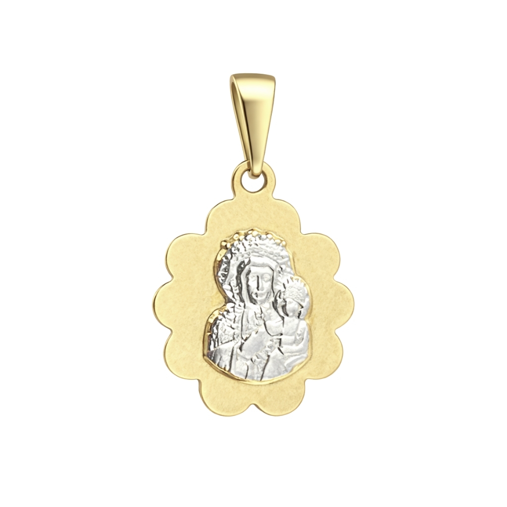 Wyjątkowy medalik został wykonany z żółtego i białego złota próby 585 (14K). Centralną część zdobi precyzyjnie wykonany wizerunek Matki Boskiej Częstochowskiej z Dzieciątkiem.